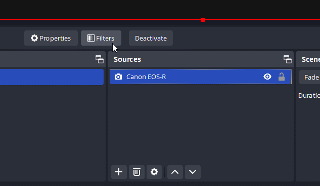 Applying a LUT to your webcam in your streaming software couldn’t be easier. From within OBS, you’ll want to select your webcam from the list of Sources. There should be a Filters button showing directly above it, or you can always right-click on the source and select Filters.