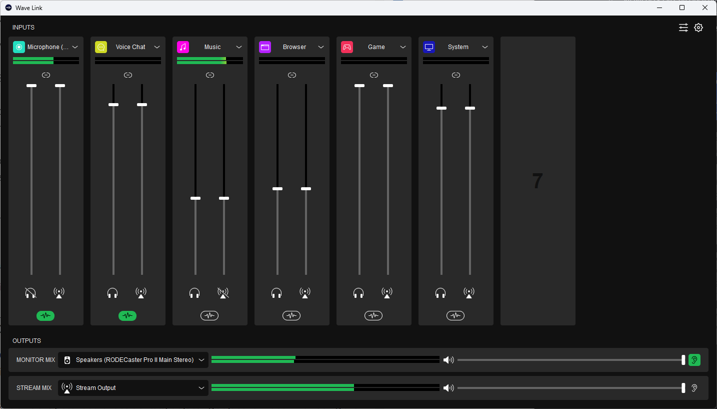 - Mute or adjust levels for any of your audio inputs or outputs in Wave Link.